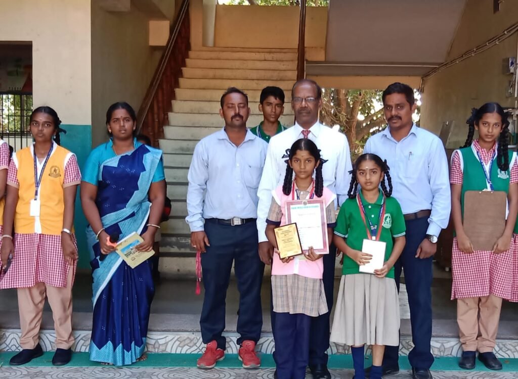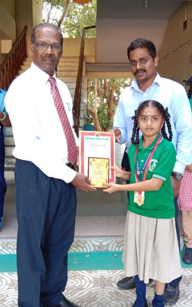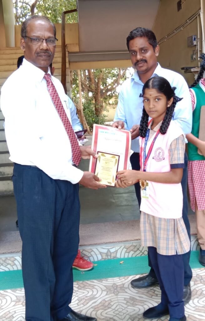 Divine Fine Arts Sabha and Dharmai Aathinam Madaliyam have organized a dance programme, ‘SIRKALI NATTIYA THIRUVIZHA-5000,’ at Sri Sattainathar Swamy Thirukovil, Sirkali, to enter the Divine World Book of Records. Our school students, SATHANA- VI std and S. THEJESVI – V Std have participated in this dance programme and got medals and trophies. The principal honored them during the morning assembly today.